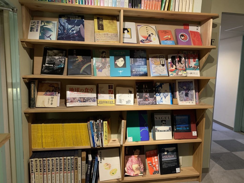 各階の共有スペースには大きな本棚が置いてありました。